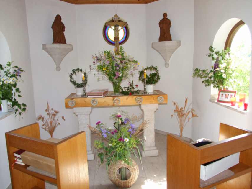 Kuchenspenden und das Schmücken der Kapelle mit Blumen und frischen Birken