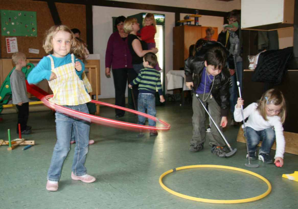 Hula Hopp, beim Indoor-Golf und vielen anderen lustigen Spielen im Pfarrheim