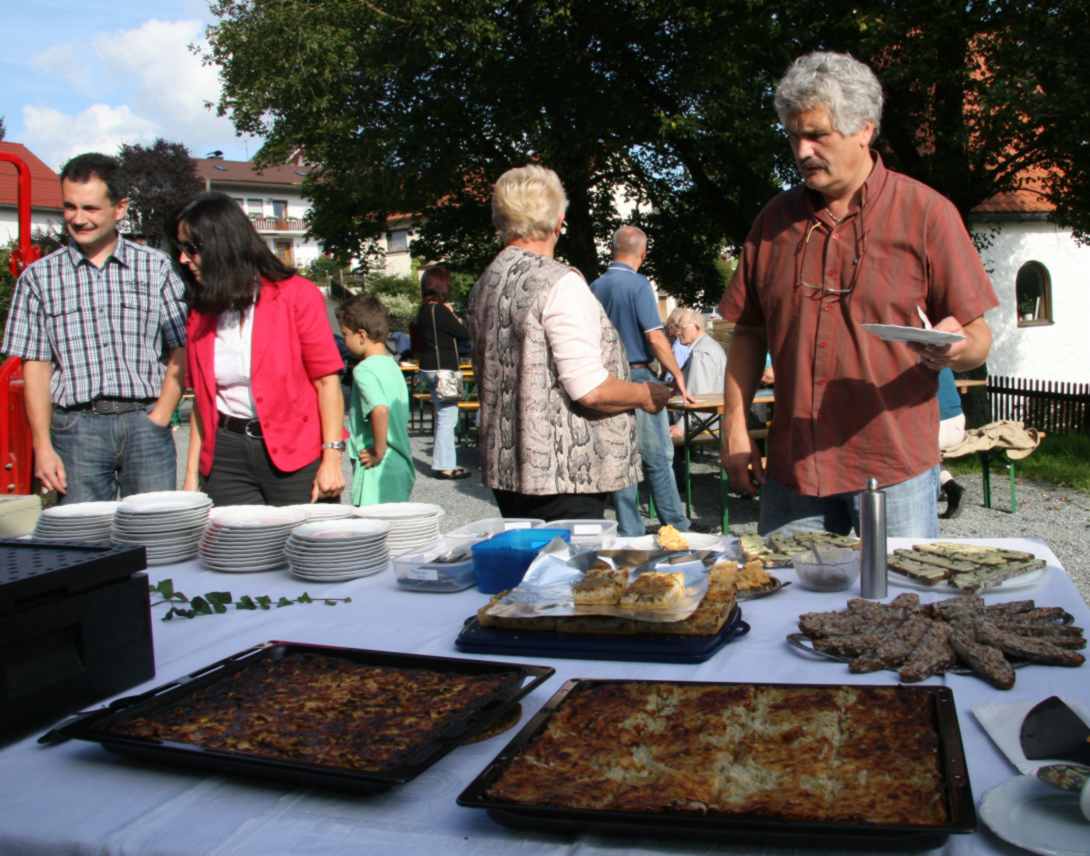 kleine Andacht – und anschließend wurde mit Zwiebelkuchen, Speck- und Käsebroten