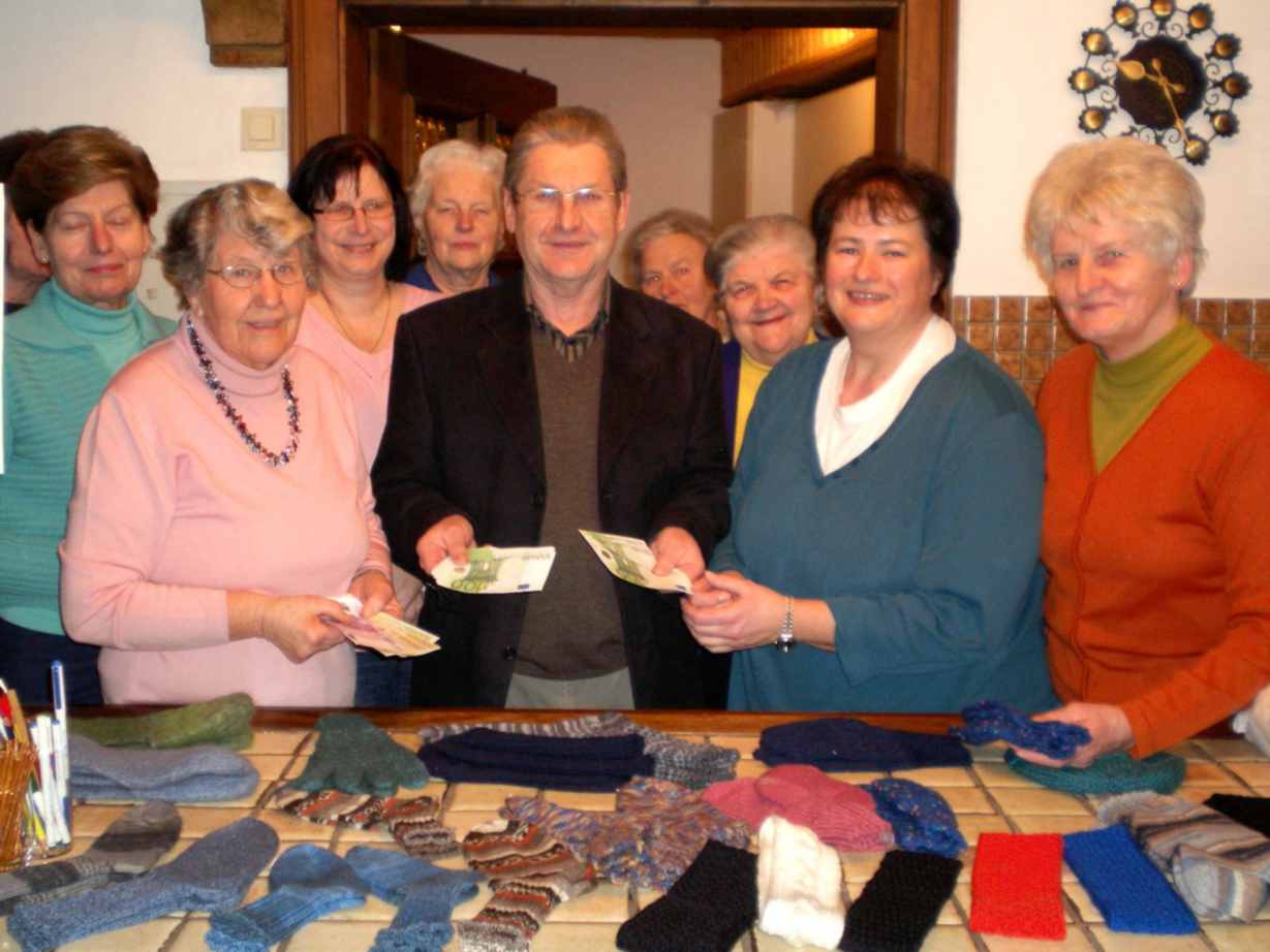 ihren Strickwaren erzielt haben. Sie verkauften Selbstgestricktes beim Pfarrfest