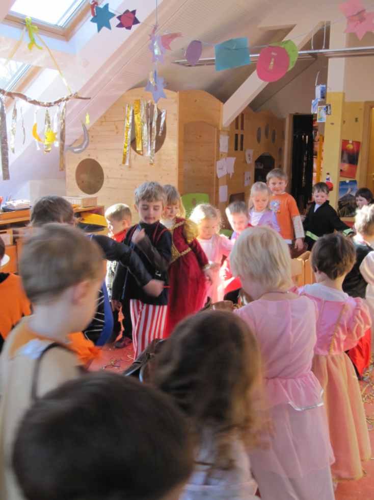Los ging es mit Musik, Konfetti- und Luftschlangenschlacht in den Gruppen. Nach einer Stärkung mit Wienern ging es dann auf zu den einzelnen Wettspielen, die in den Gruppen stattfanden. |