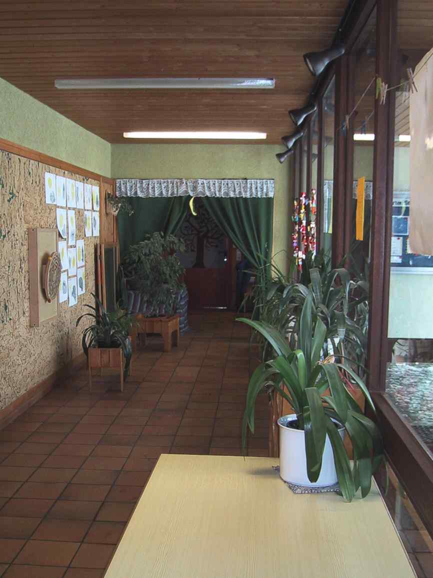 Die Eingangshalle, der Intensivraum und die Garderobe werden in der Freispielzeit von den Kindern zum Spielen benutzt.