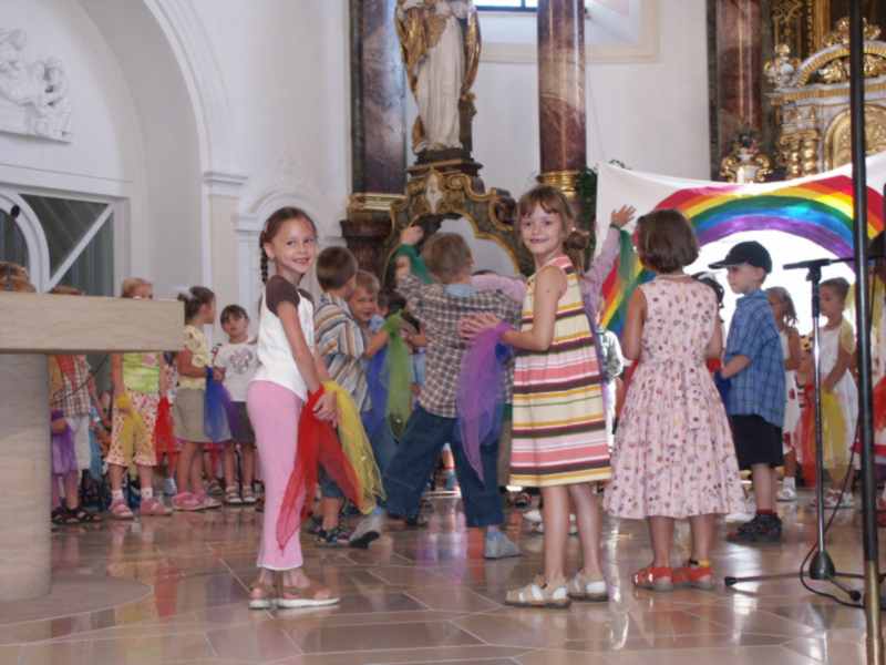 Im Mittelpunkt standen natürlich die Kleinen, die mit großer Begeisterung die biblische Erzählung von Noah und dem Bau der Arche aufführten.