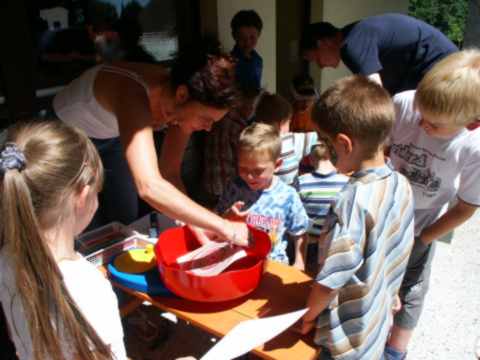 Der Nachmittag stand dann ganz im Zeichen der Kinder, die hier bei Spaß und Spiel zu ihrem Recht kamen. Der Kindergarten platzte fast aus allen Nähten, so viele Besucher hatten sich eingefunden und erfreuten sich an Geschicklichkeitsspielen, Zöpfeflechten, Kinderschminken, einer riesigen Tombola, einem großen Quiz rund um den Kindergarten sowie einer Bastel – und Fotoausstellung.