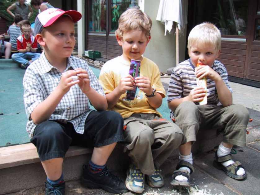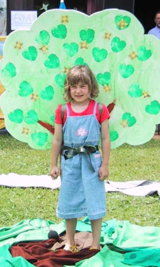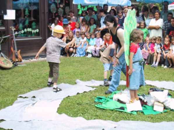 Ungeduldig warteten die Vorschulkinder auf ihrer großen Auftritt. In ihrem Stück „Der fliehende Baum“ erzählten sie eine Geschichte über einen großen Lindenbaum (trotz der Hitze tapfer dargestellt von der kleinen Linda). Viele Jahre war dieser Baum der Mittelpunkt im Dorf, aber die