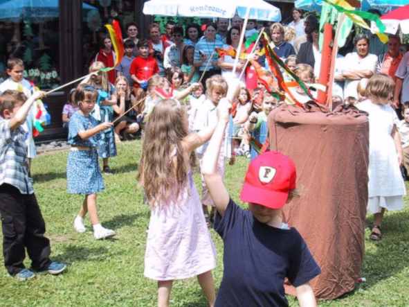 Attraktionen wurden vom Kindergartenpersonal zusammen mit einigen Eltern gestaltet. Musikalisch ausgestaltet wurde der Nachmittag von der dreiköpfigen Band „Puck fair“, die mit Irish folk in Können unter Beweis stellten. Gerne „opferten“ zwei Kindergarten-Eltern, die Mitglieder der Band sind, ihren Nachmittag um die Gäste mit ihren Liedern zu unterhalten.