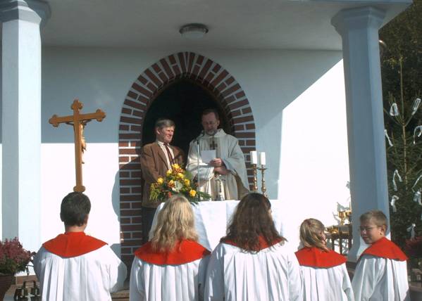 Weihwasser und Weihrauch das neue Kirchlein ein und wünschte sich, dass dieser
