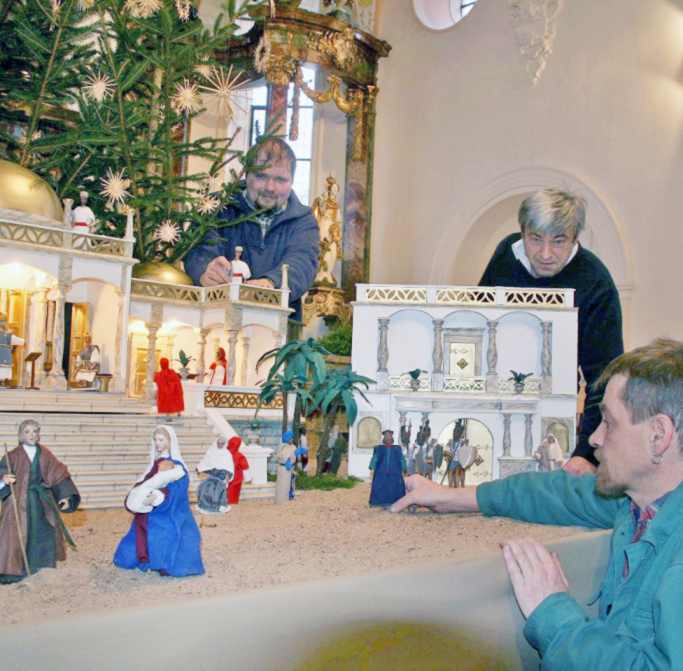 Jahreskrippe umfasste fünf Tempel, zwölf Häuser, eine Ruine, vier Türme,