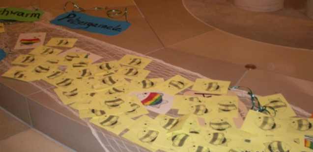 Seiten „schwammen“ Jugendliche, die Fische darstellten, an dieses heran. Es fand