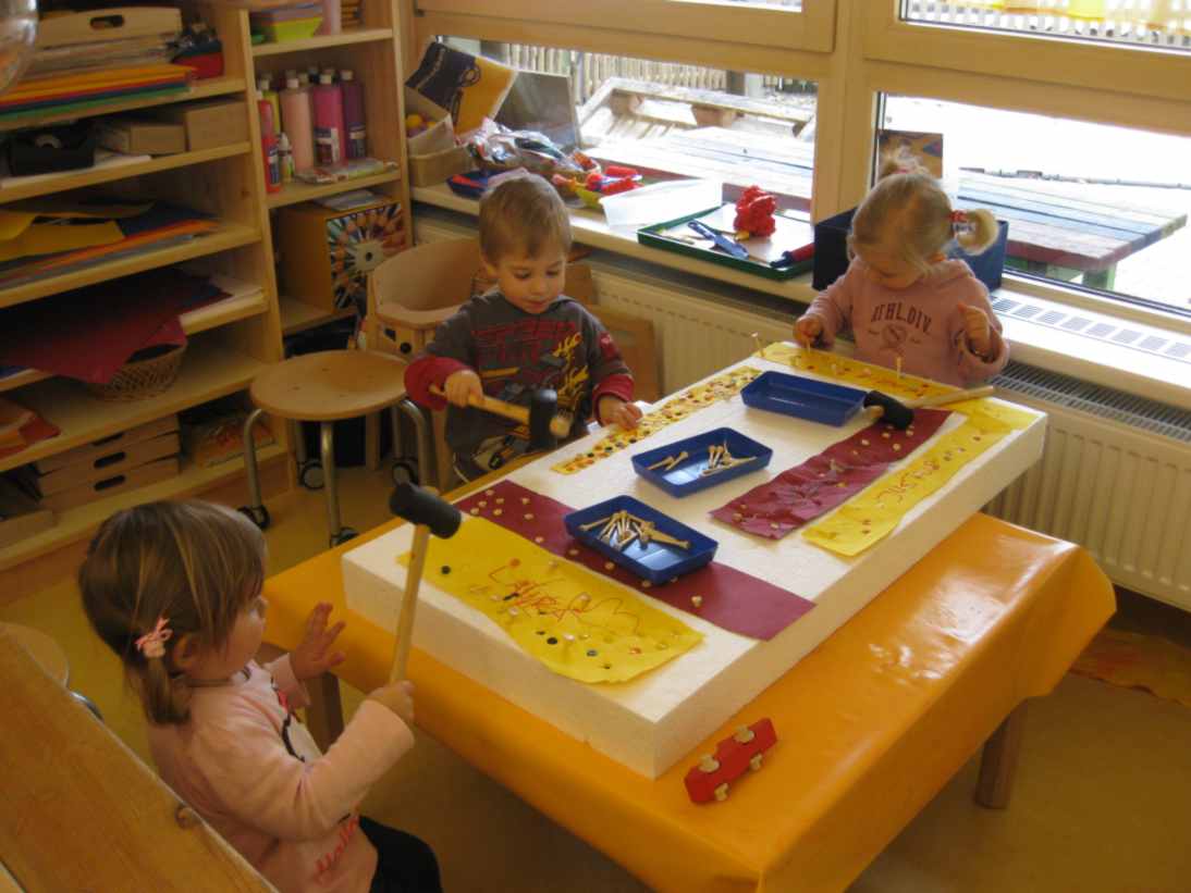 benutzen die Kleinen Hammer und Nagel beim Hammerspiel