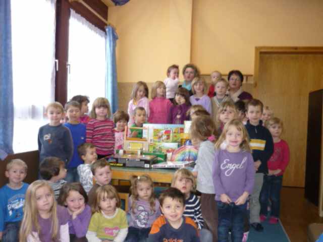 Spielsachen im Wert von 400,- Euro an die Gruppen verteilte. Die Familie Porzelt