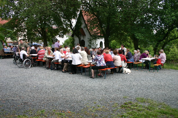 Wanderung vor der Kapelle in Römersreuth versammelt hatten. Denn die Freude