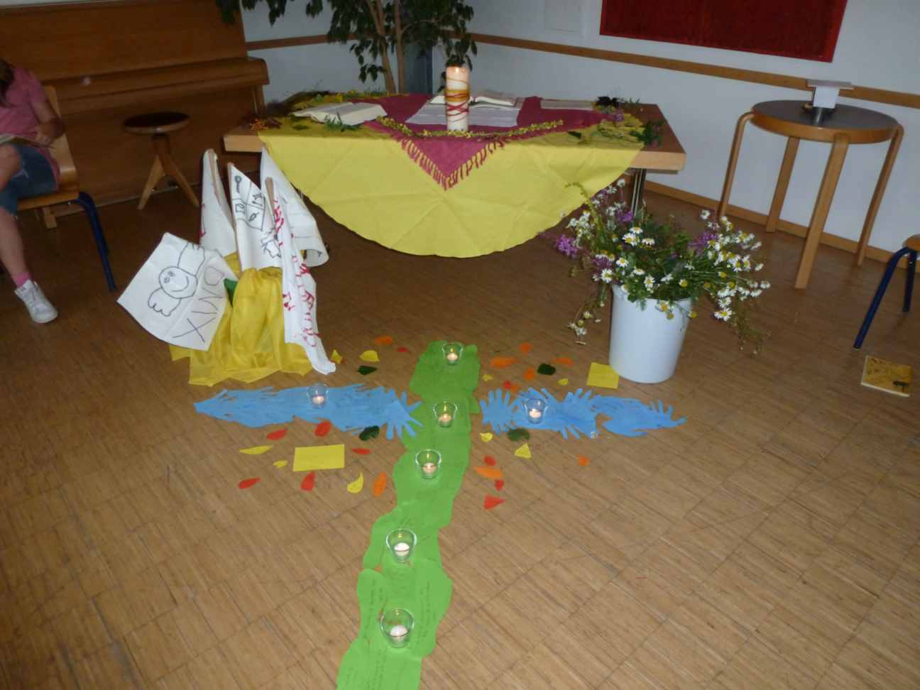 die Mitte legen, wo ein kleiner Altar aufgebaut war.